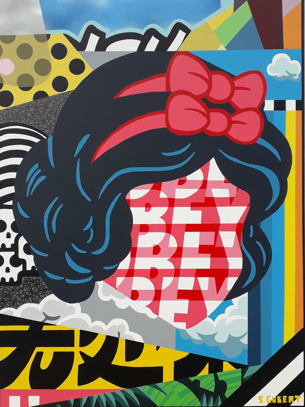 Stéphane Gubert travaille aux frontières de la figuration narrative, de l’art urbain et du surf art. Dans chacune de ses séries de peintures, on retrouve une identité singulière marquée par une palette de couleurs, un trait, et des codes populaires. Son style s’inspire des grands maîtres qui le nourrissent et le passionnent et auxquels il aime faire référence et surtout rendre hommage à Roy Lichenstein, Hervé Télémaque, Erro, Jean Dubuffet, Valerio Adami…